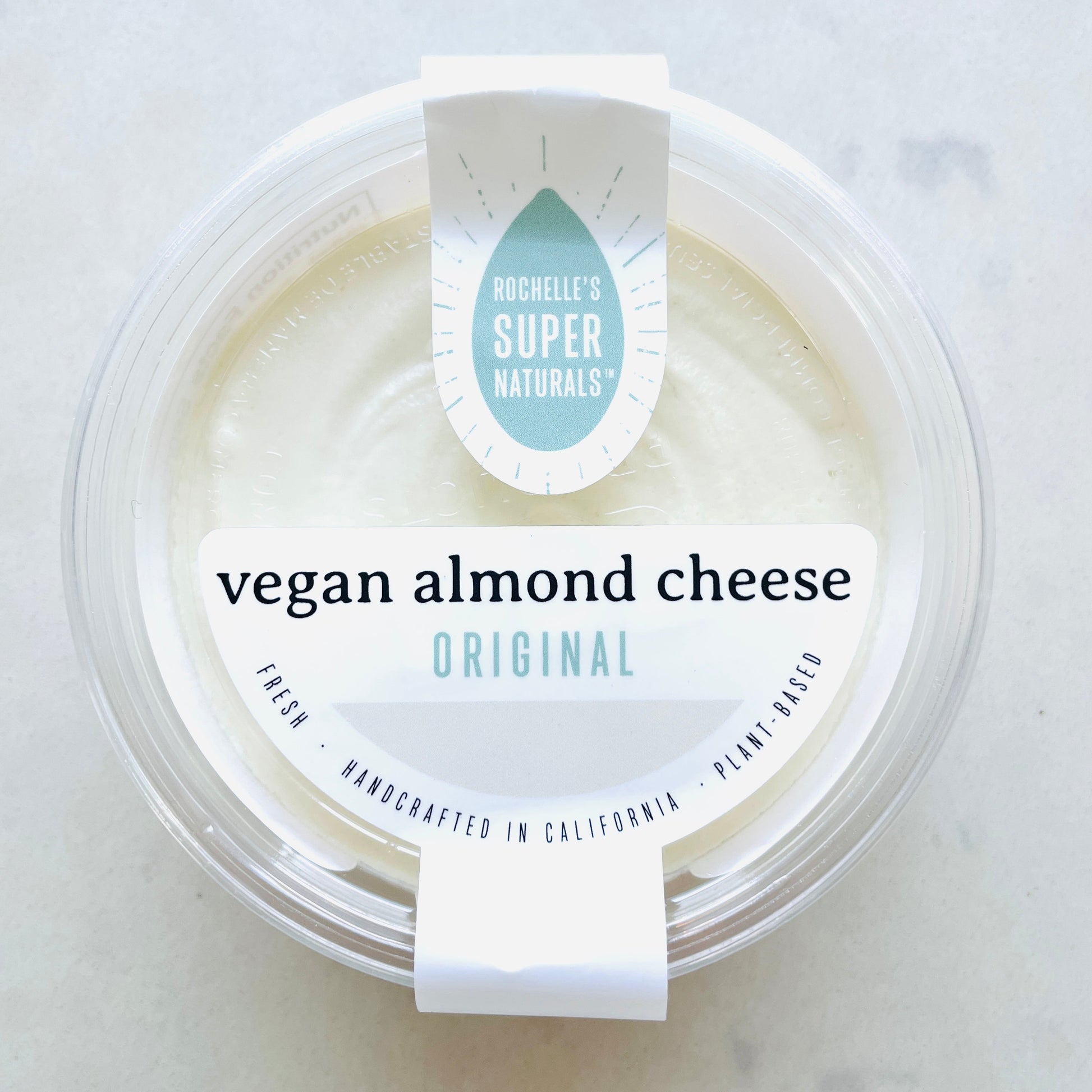 5 ounces of fluffy white spreadable 100% fresh vegan cheese made mostly from organic, non-GMO California ingredients including almonds, garlic, lemon, extra-virgin olive oil (all organic), and sea salt.